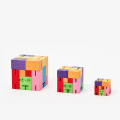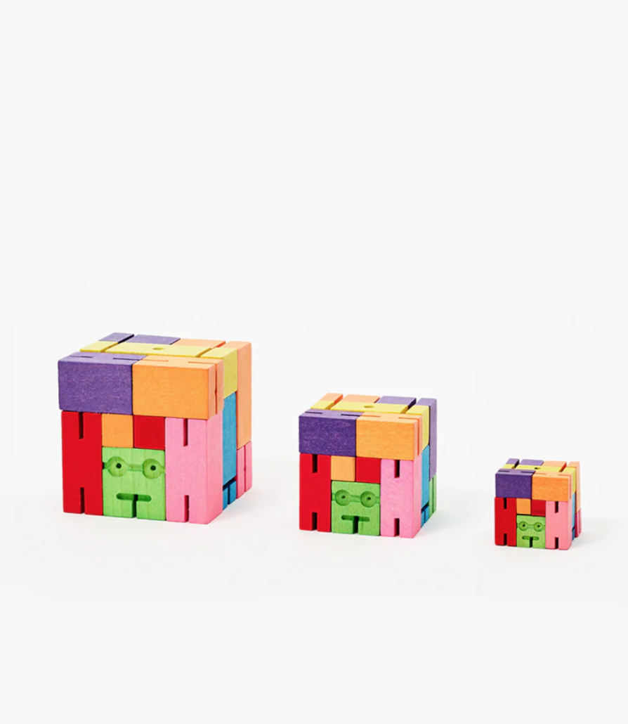 The Cubebots are made of wood and elastic band.