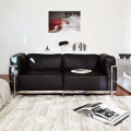 The Corbusier group referred to their Sofa Collections (1928) as “cushion baskets”, which they designed as a modernist response to the traditional club chair. These pieces reverse the standard structures of sofas and chairs by having frames that are externalized. With thick, resilient pillows resting within the steel frames, the idea was to offer all the comfort of a padded surface while applying the elegant minimalism and industrial rationale of the International Style. The resulting aesthetic of the Corbusier Grand Modele Sofa’s simple tubular structure is remarkably relevant to how we live today, almost 100 years later.