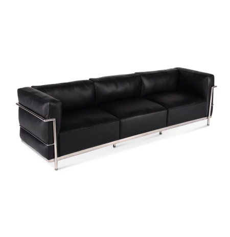 The Corbusier group referred to their Sofa Collections (1928) as “cushion baskets”, which they designed as a modernist response to the traditional club chair. These pieces reverse the standard structures of sofas and chairs by having frames that are externalized. With thick, resilient pillows resting within the steel frames, the idea was to offer all the comfort of a padded surface while applying the elegant minimalism and industrial rationale of the International Style. The resulting aesthetic of the Corbusier Grand Modele Sofa’s simple tubular structure is remarkably relevant to how we live today, almost 100 years later.